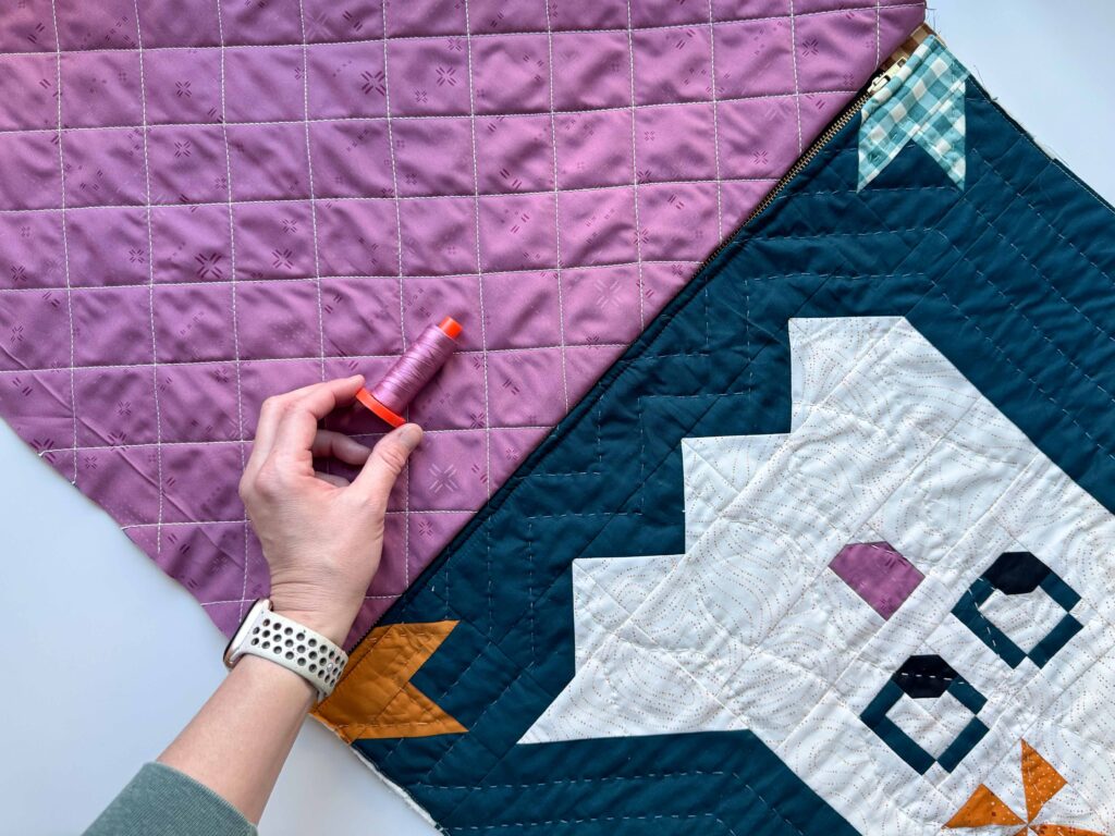 Ready to turn a favorite quilt block into something soft, spooky, and totally Scout-approved? In this tutorial, we’ll transform my hand-quilted Birdie Boo block into a cozy 22″ x 22″ zippered throw pillow cover — perfect for seasonal décor or year-round snuggles.