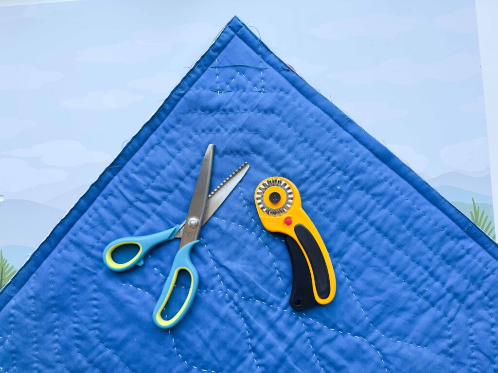 Use pinking shears or a zigzag rotary cutter to trim the seam allowances and clip the corners to reduce bulk — but be careful not to cut through your stitches.