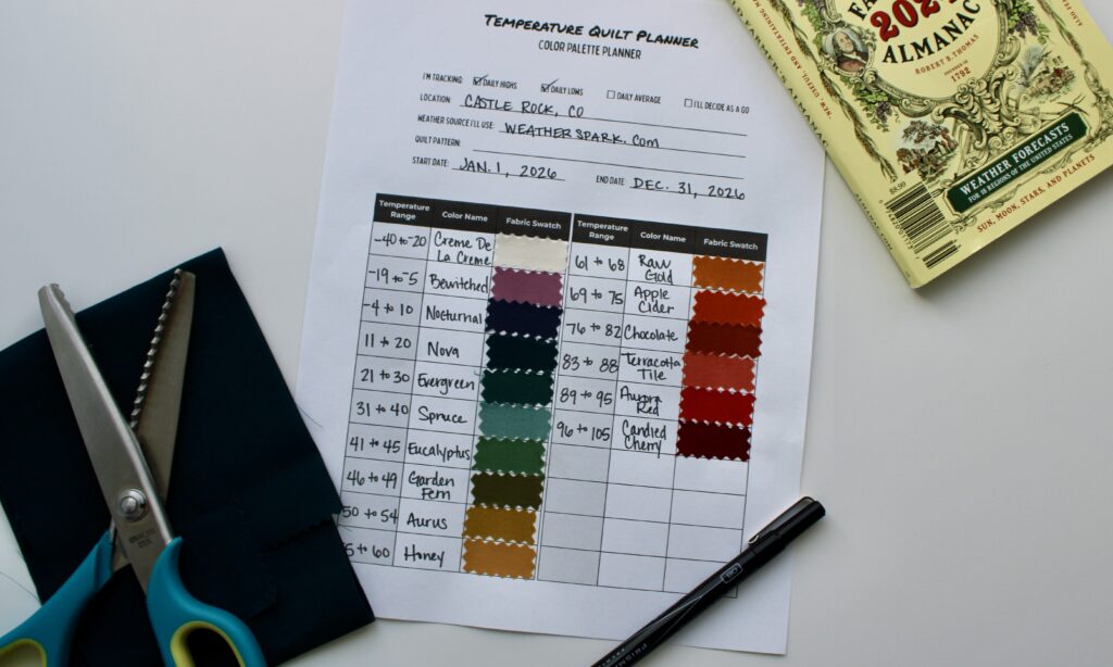 In this post, I want to walk you through how I planned my color palette, temperature key, and quilt layout, and share a free planning resource I created to make temperature quilts feel a little less intimidating and a lot more fun.